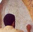 [….Ο ΜΑΡΚΟΣ ΚΑΜΠΑΝΗΣ (γ. 1955) έχει εκτελέσει ζωγραφικές εργασίες στη Σιμωνόπετρα του Όρους, έχει εκτυπώσει στις Καρυές από αυθεντικές χαλκογραφικές μήτρες «χάρτινες εικόνες» του 19ου αι., έχει δημιουργήσει νέες σειρές με τους πύργους του Αγίου Όρους, έχει ζωγραφίσει και σχεδιάσει τις μονές σαν τον Λυκούργο Κογεβίνα και τον Σπύρο Παπαλουκά αλλά κι έχει εικονογραφήσει τον ΒΙΟ ΚΑΙ ΠΟΛΙΤΕΙΑ ΤΟΥ ΑΓΊΟΥ ΣΙΜΩΝΟΣ ΤΟΥ ΑΘΩΝΙΤΟΥ (εκδ. Ιεράς Μονής Σίμωνος Πέτρας, Άγιον Όρος 2000) με την αφέλεια και την πίστη αρχαίου εικονογράφου. Η ζωγραφική του συνδυάζει γνώση, αίσθηση του περιττού και ταπεινότητα, κάτι που την καθιστά λαμπερή και πολύτιμη. Παράδειγμα μια τοιχογραφία του σε βράχο στην όαση Τάρφα της Ι. Μ. Σινά. Πρόκειται για τη Γέννηση ιστορημένη σαν παραμύθι και