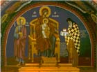 Η παράστασις του Μελισμού (τέσσερεις Ιεράρχες) Γρηγόριος ο Θεολόγος, Ιω. Χρυσόστομος, Μ. Βασίλειος, Μ. Αθανάσιος